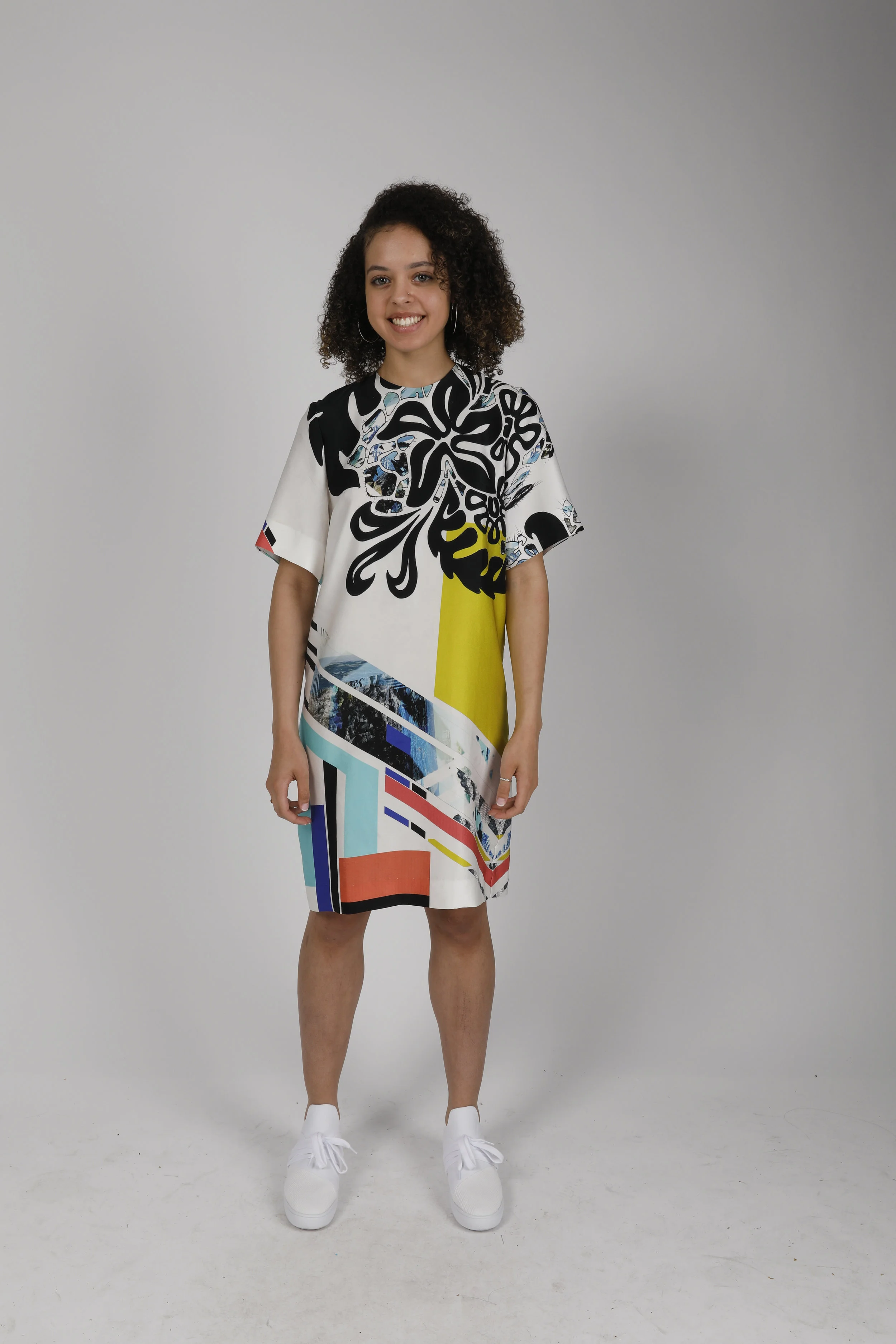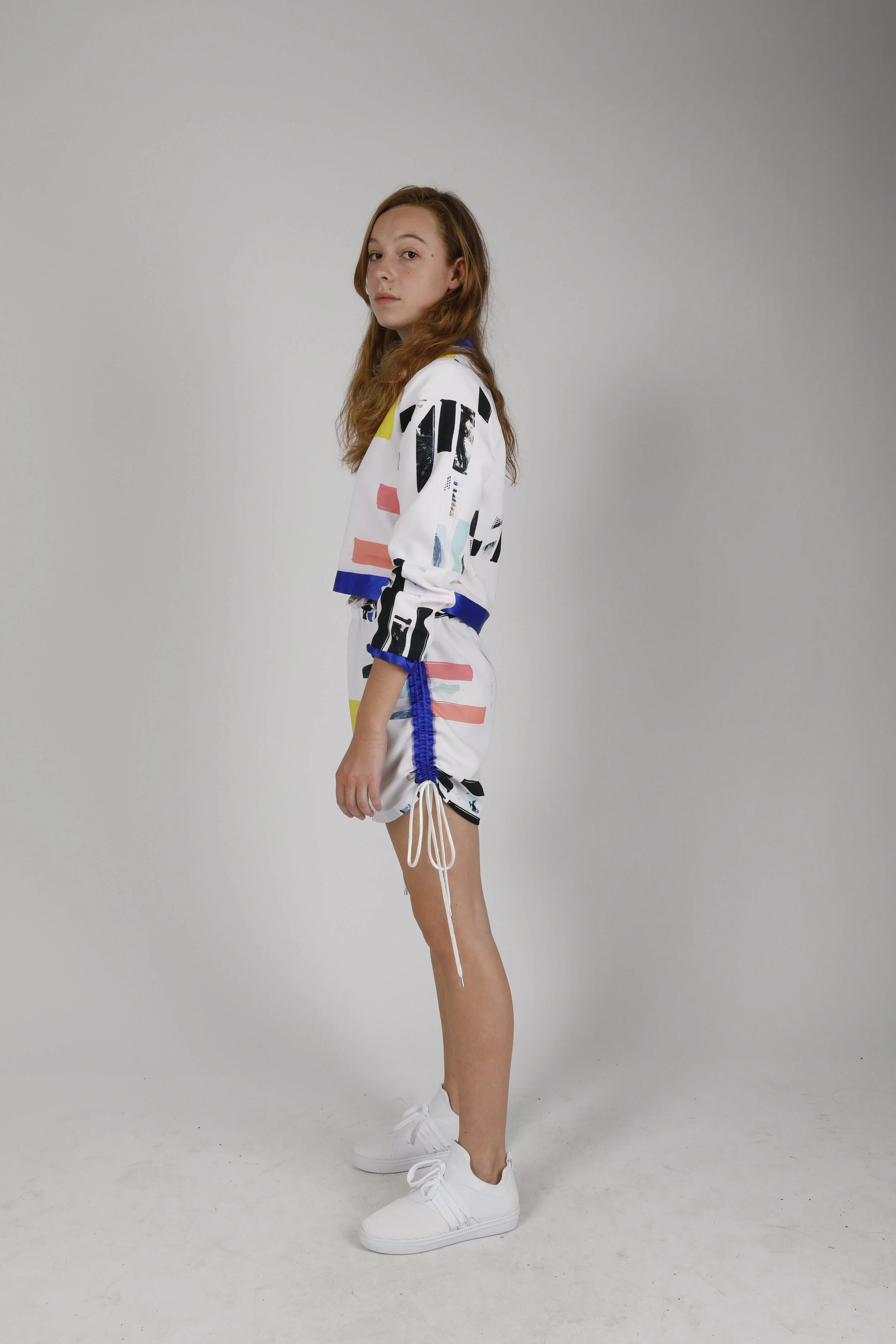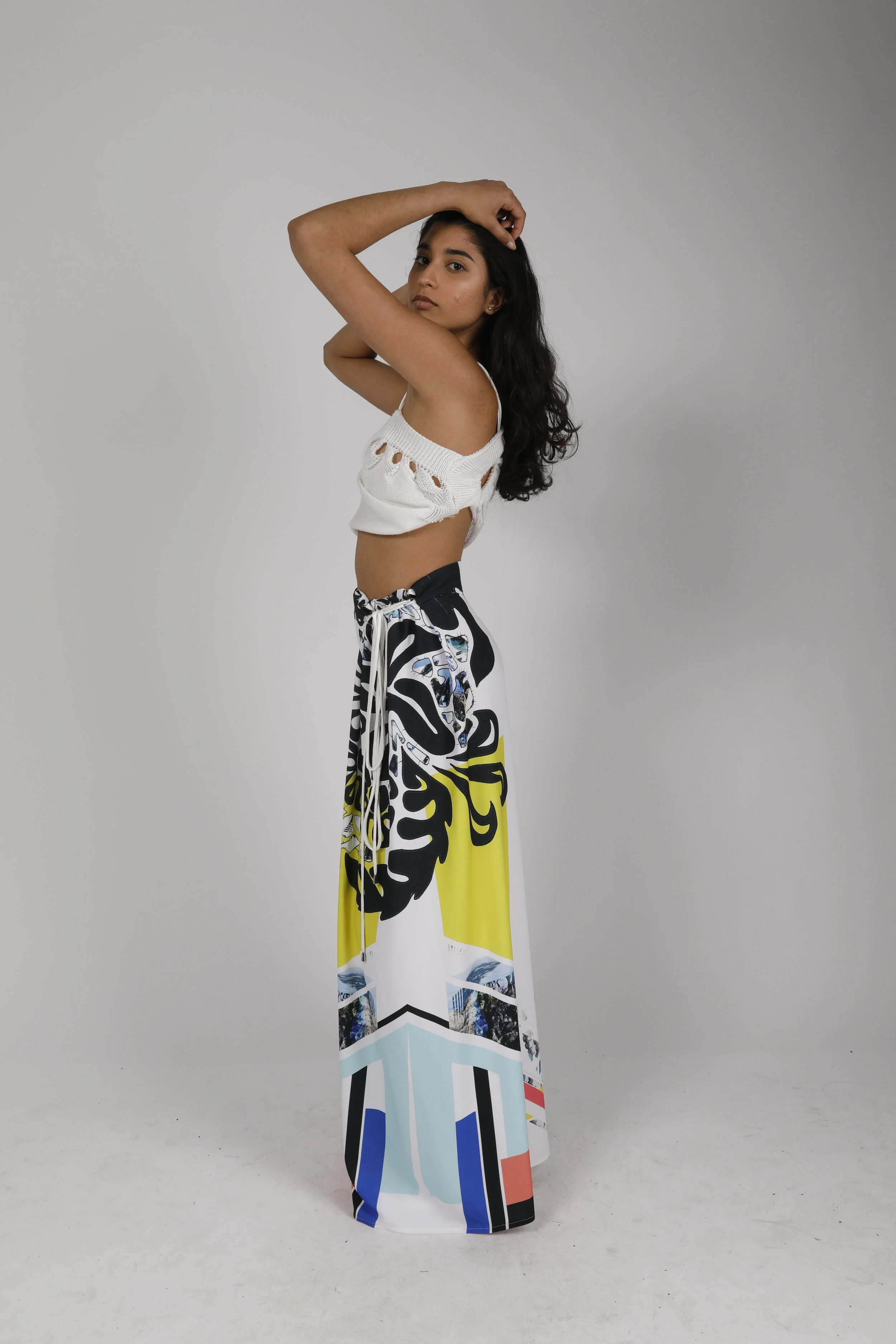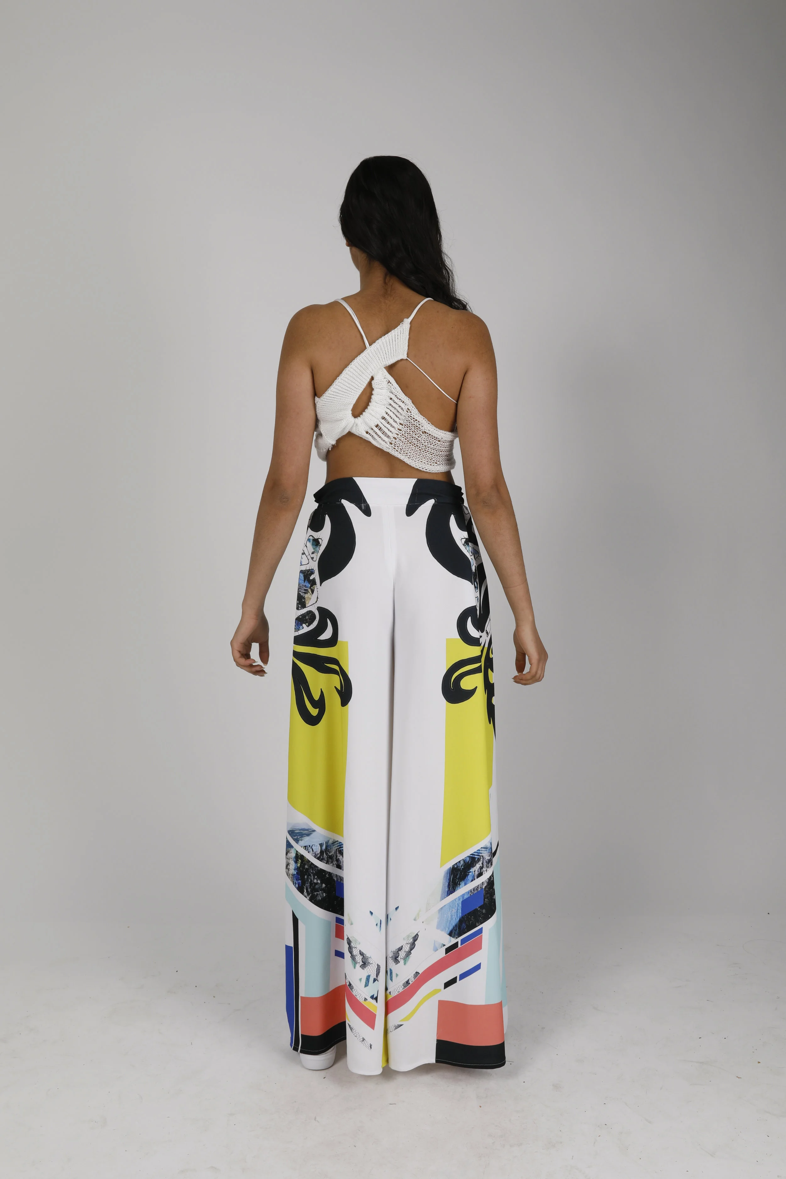 I have always been interested in looks that are both sporty and elegant. I researched old Italian lace, paying close attention to the yarns and how they formed the artwork. I collaged images of beaches into a simplified lace pattern I created, and added geometric shapes to make it more sporty.