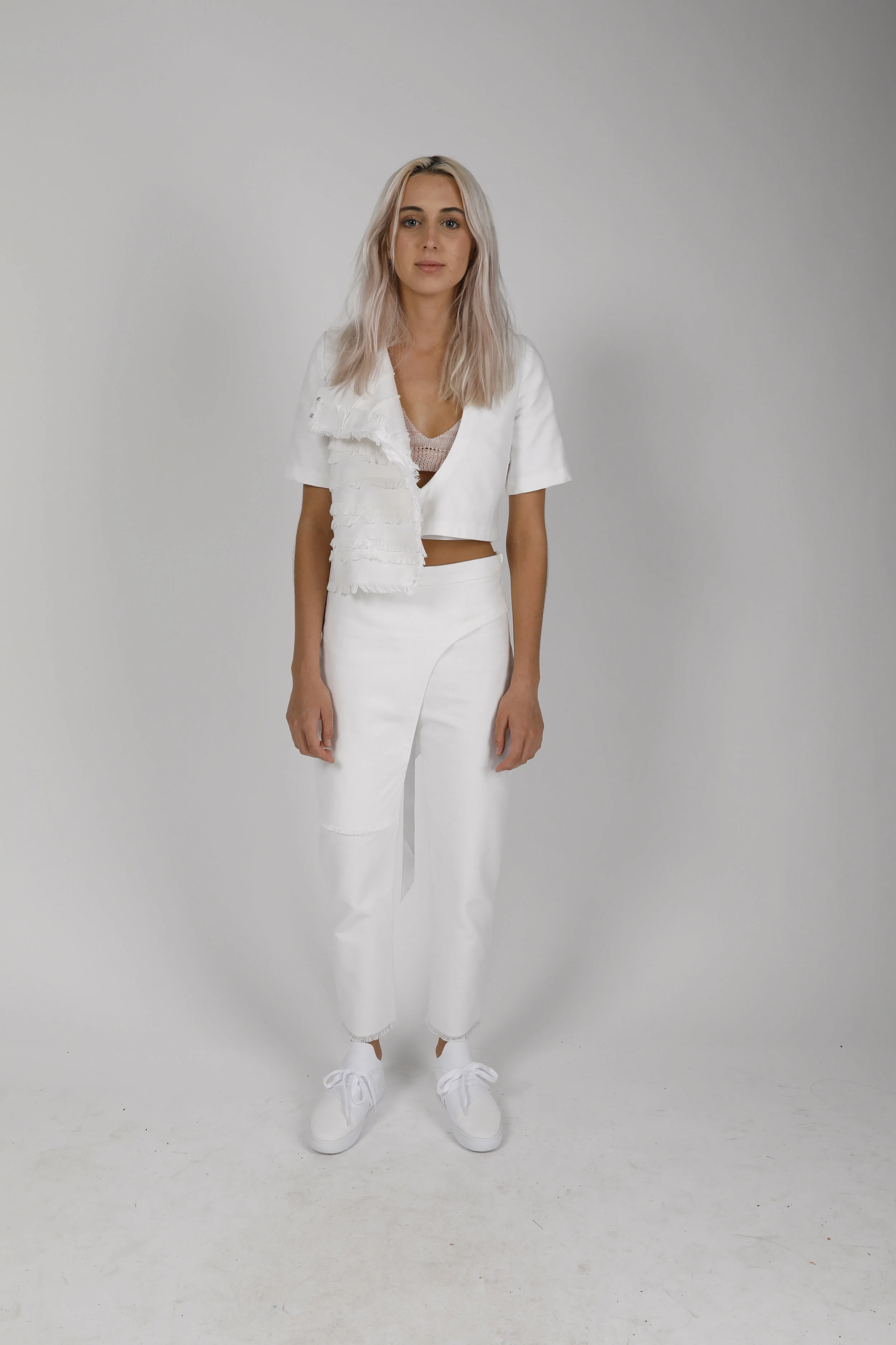 I began by fraying my wovens, allowing me to get to know them a bit better. After playing with them and analysing their weight/drape I drafting patterns to bring them to life.